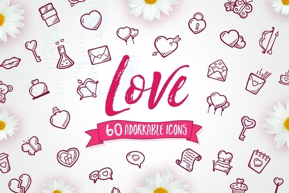 60 hand drawn, vector and colored icons. This set have so many hearts that you will fall in love in first person you see just from looking at it. Those sweet little illustration will help you create lovable designs. This icon pack is great as stand alone for Valentine’s season or as an addition to Wedding Icons.