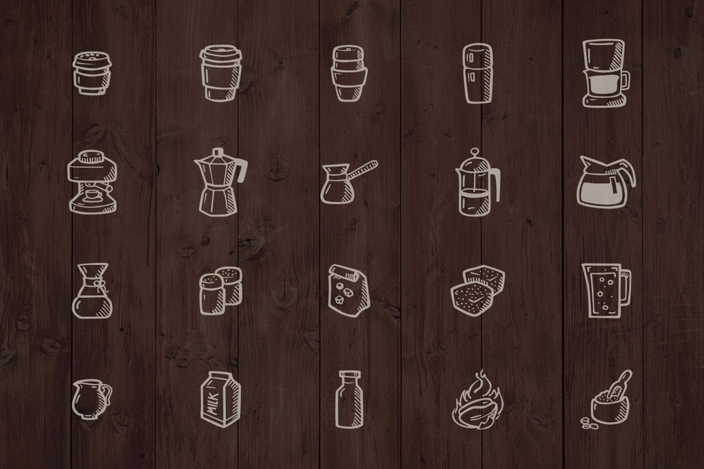 107 Hand Drawn Vector Icons. This set is perfect for your local coffee shop place. In addition to hand drawn icons I’ve prepared hand drawn badges to fit the icons style, which you can use to create logos. You will find here everything you need to illustrate coffee house menu or coffee recipes on your blog. There’s also teacup and teapot icon for tea time enthusiasts. This carefully hand drawn icon set will help you create rich and friendly looking designs.