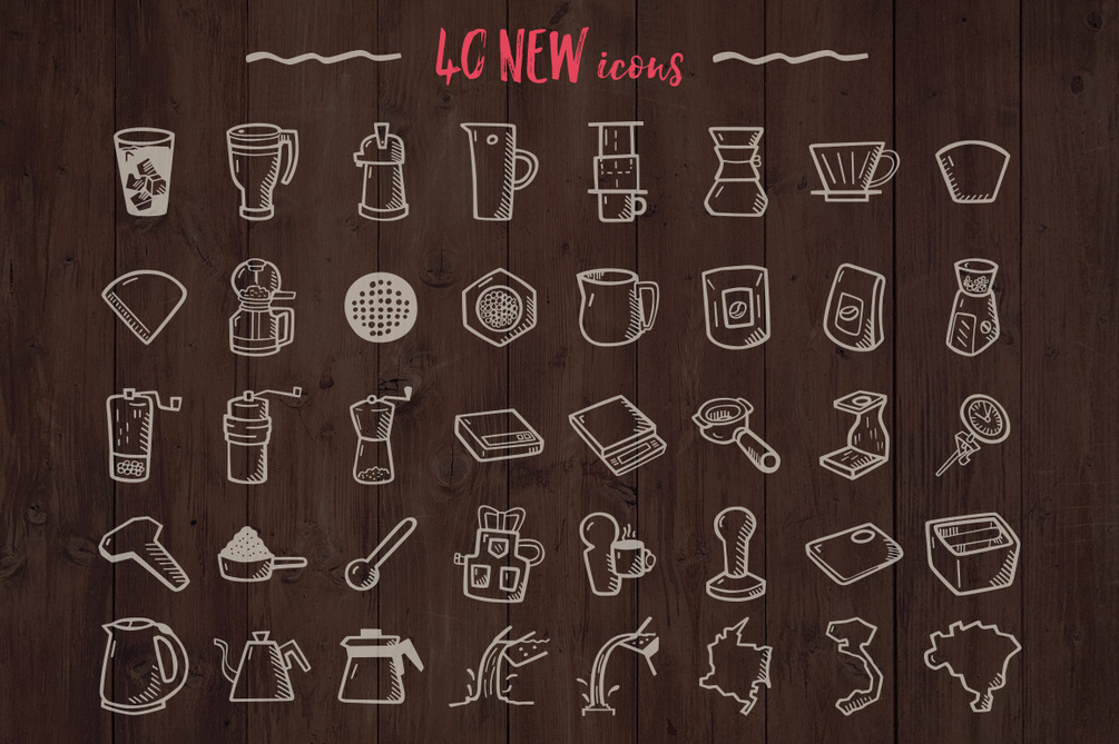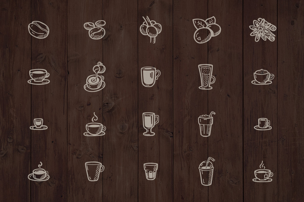 107 Hand Drawn Vector Icons. This set is perfect for your local coffee shop place. In addition to hand drawn icons I’ve prepared hand drawn badges to fit the icons style, which you can use to create logos. You will find here everything you need to illustrate coffee house menu or coffee recipes on your blog. There’s also teacup and teapot icon for tea time enthusiasts. This carefully hand drawn icon set will help you create rich and friendly looking designs.