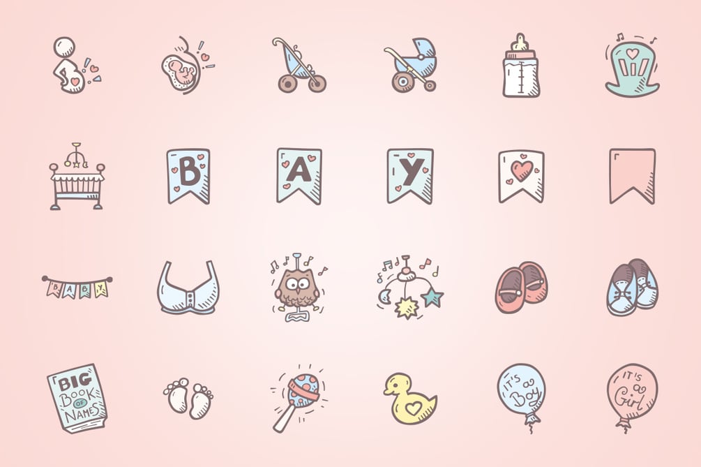 Screens at https://goodstuffnononsense.com/hand-drawn-icons/baby-shower-icons/