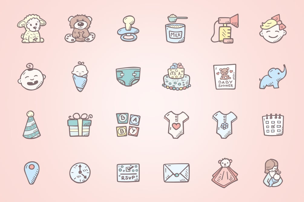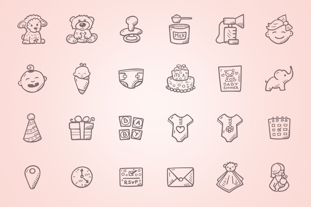 Screens at https://goodstuffnononsense.com/hand-drawn-icons/baby-shower-icons/