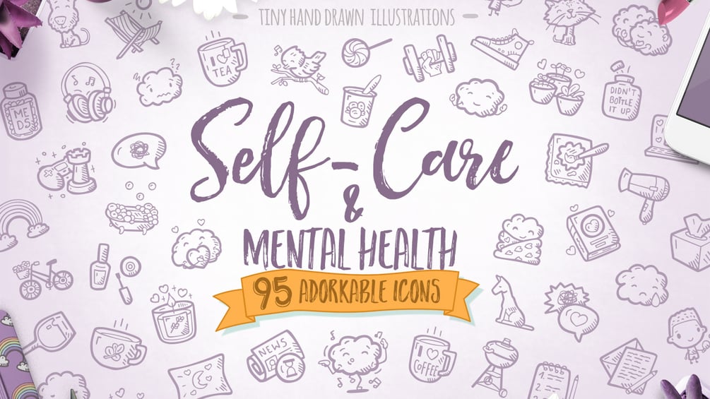 95 Hand-drawn Icons all about Self-Care and Mental Health. It’s a complete resource to spread awareness about mental health and support a healthy lifestyle that is so important nowadays :-)