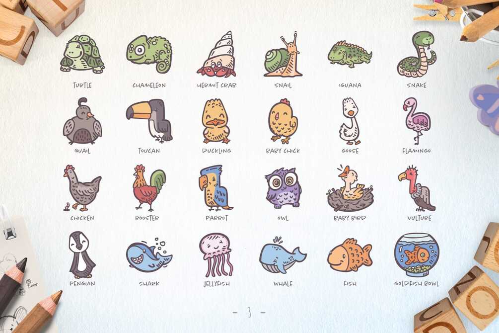 I made sure to create each icon with a unique personality extracting as much cuteness as possible. The playfulness and diversity of this icon pack will make a great purchase and help you create wonderful designs. It’s perfect for website design, blogs, planner stickers, or just fun vinyl stickers, metal pins, teacher aid and school class decoration, educational game design, nursery posters, etc!