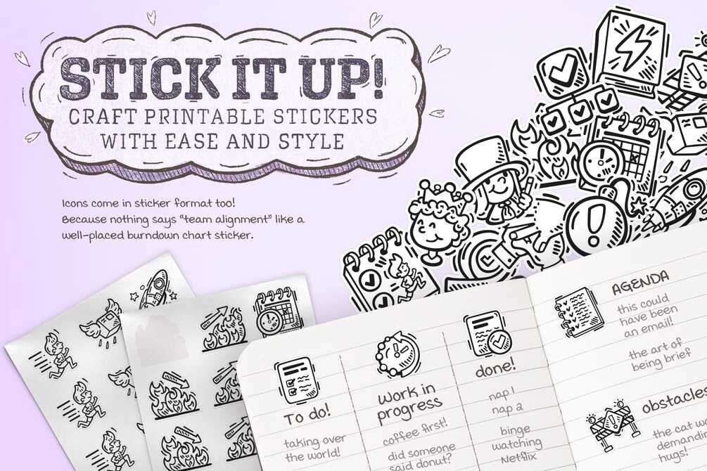 Scrum masters, agile coaches, product owners, trainers, or anyone who wants to make workshops, journals, and decks look sharp without going full sticker-fest.